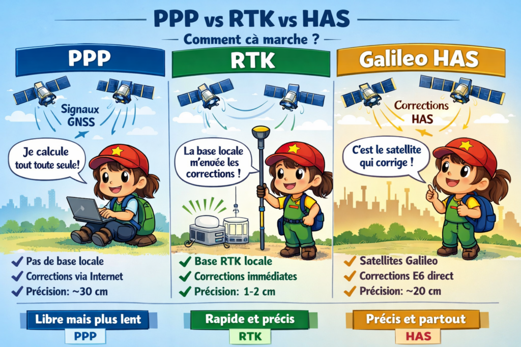Le PPP et Galileo HAS forment un duo fascinant… un peu comme deux artisans qui travaillent sur la même pièce mais avec des outils différents. L’un est une méthode de calcul, l’autre une source de corrections. Et le HAS reste encore largement méconnu, alors qu’il change discrètement le paysage du GNSS. 🛰️